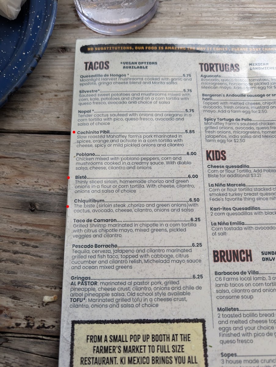 For a leisurely Sunday outing, Ki' Mexico’s brunch is a local favorite. Indulge in the Barbacoa De Villa, featuring three overnight slow-roasted lamb tacos accompanied by consome soup—a perfect dish to savor while enjoying the lively atmosphere and perhaps some enchanting live music.